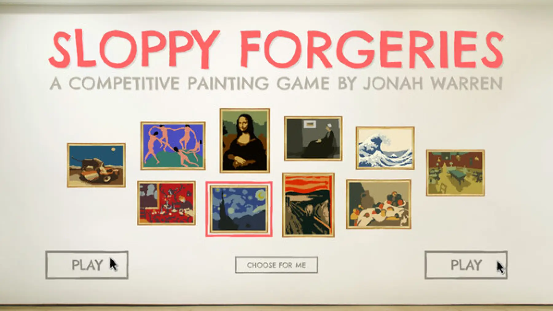 Sloppy Forgeries is a fast-paced competitive painting game. Practice your skills by butchering iconic masterpieces in one of the few drawing games that measures accuracy pixel-by-pixel in real-time.